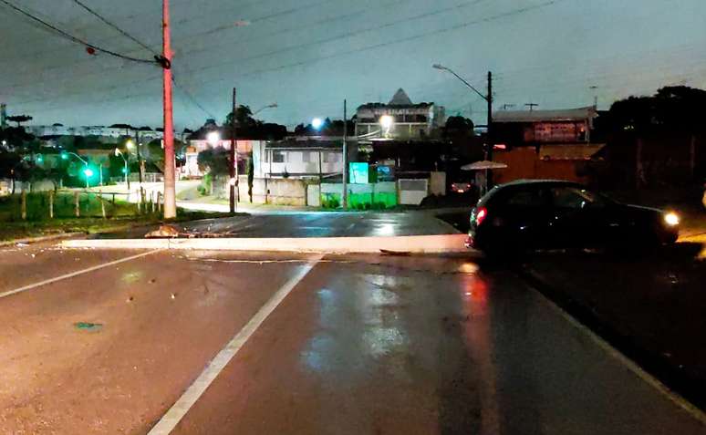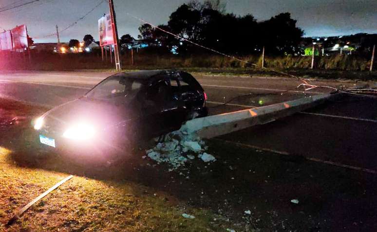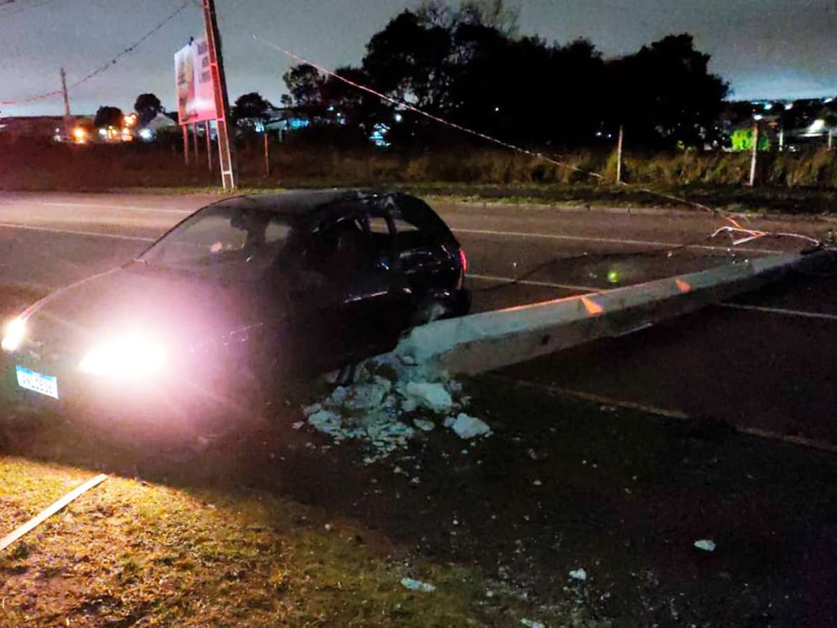 Com carro lotado, motorista derruba poste e foge, em Curitiba; cinco ficaram feridos