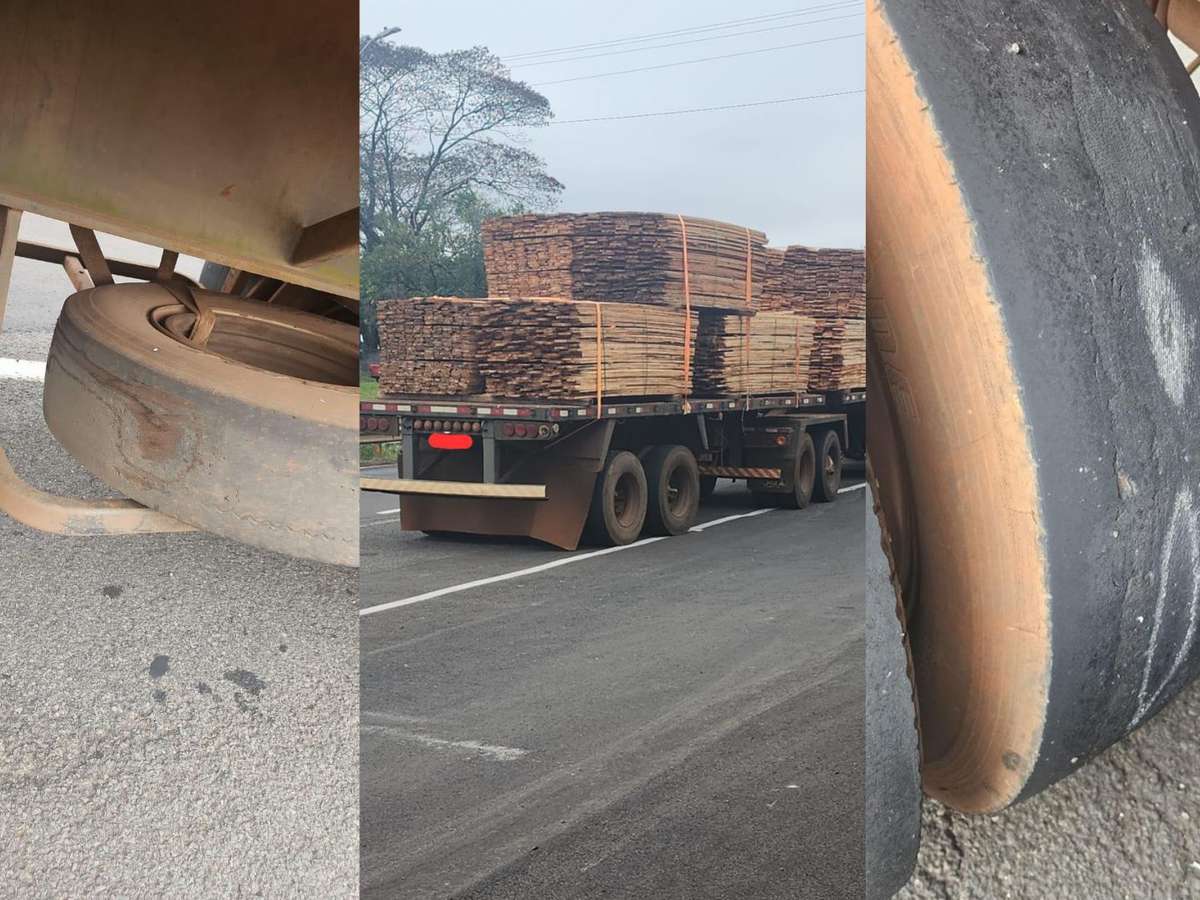Com pneus carecas, caminhão que transportava madeira é apreendido no Paraná