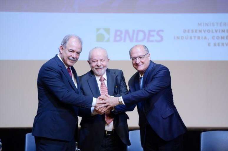 Posse. Aloizio Mercadante toma posse na presidência do BNDES com Lula e Alckmin no Rio de Janeiro nesta segunda-feira (6). Crédito: Tomaz Silva / Agência Brasil.