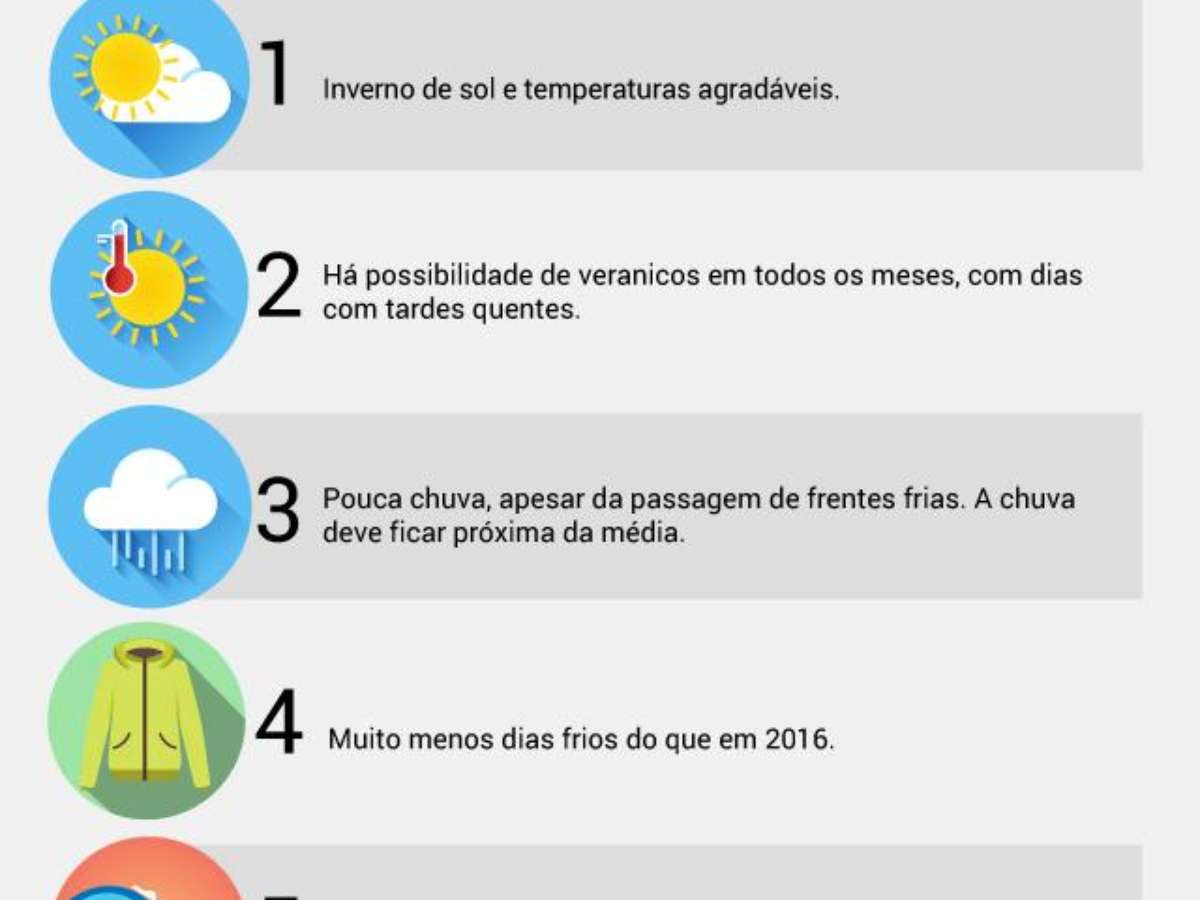 O inverno de 2017 não terá o frio e nem as ressacas de 2016 e também não terá a secura de 2015 e 2014. Nem frio e nem calor demais e nem chuvaradas.
