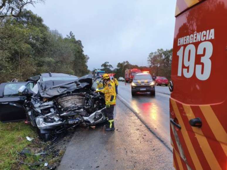 O Corpo de Bombeiros foi acionado por volta das 17h30 e encontrou o veículo da vítima, com placas de São José, completamente destruído. O condutor estava politraumatizado e sem sinais vitais. O corpo foi retirado do automóvel e o local ficou sob responsabilidade da Polícia Rodoviária Federal (PRF).