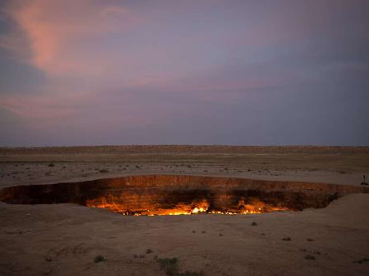 A "Porta do Inferno" de Derweze é uma cratera de gás natural em chamas que parece literalmente um portal para o Inferno. Sua fama é baseada nas chamas contínuas que queimam há décadas, alimentadas por reservatórios de gás subterrâneo. As chamas iluminam o céu noturno e criam uma visão impressionante que evoca a ideia de um portal para o submundo.