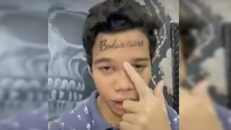 Jovem que viralizou em 2022 após tatuar o sobrenome do ex-presidente por causa de uma aposta revela o custo financeiro para remover a marca da testa; veja