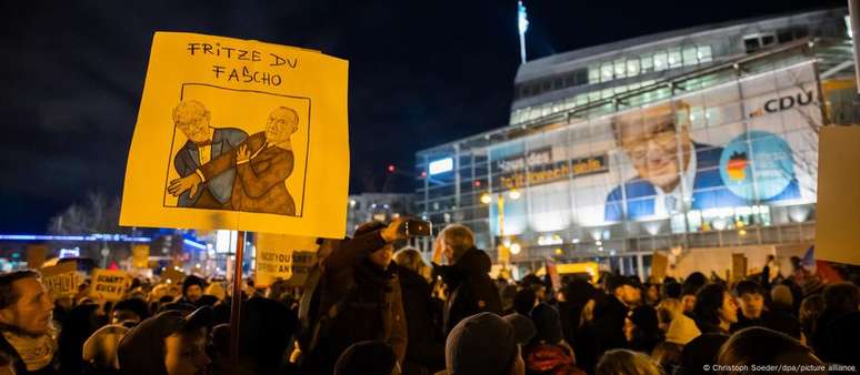 Os manifestantes acusaram a CDU e seu líder, o provável futuro chanceler da Alemanha Friedrich Merz, de romper o chamado "cordão sanitário" - o consenso há muito estabelecido entre os principais partidos da Alemanha sobre isolar a extrema direita das decisões políticas.