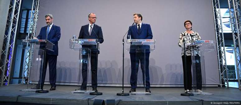 O bloco composto por CDU e seu irmão da Baviera, União Social Cristã (CSU), o mais votado nas eleições parlamentares antecipadas de fevereiro com 28,6%, e o Partido Social Democrata (SPD), do atual chanceler federal Olaf Scholz e terceiro mais votado, com 16,4%, anunciaram em Berlim a conclusão de um acordo de coalizão para formar um novo governo.