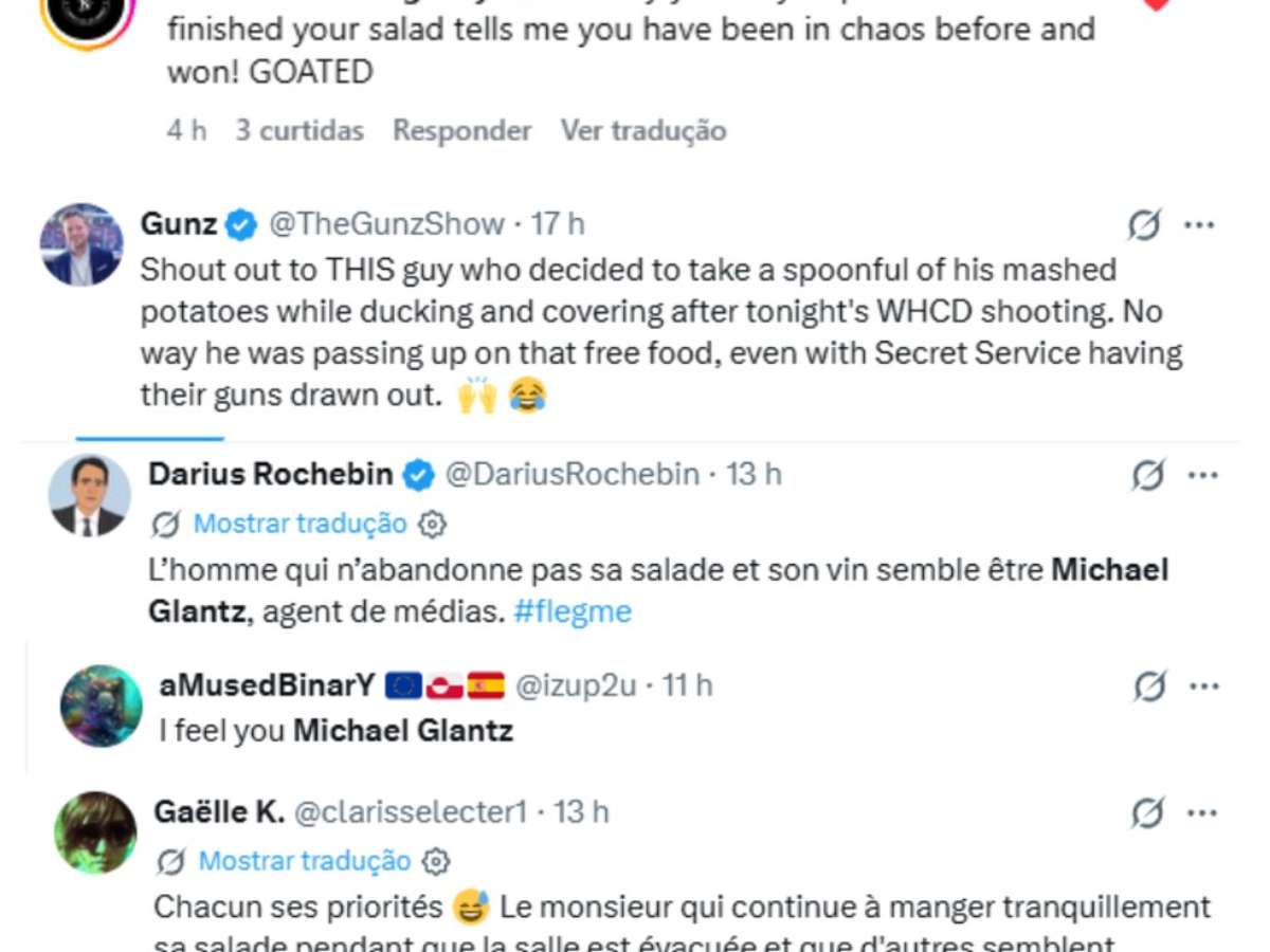 Um atentado no Jantar dos Correspondentes da Casa Branca terminou com a evacuação de autoridades, mas um homem viralizou ao continuar comendo calmamente. Conheça a história de Michael Glantz