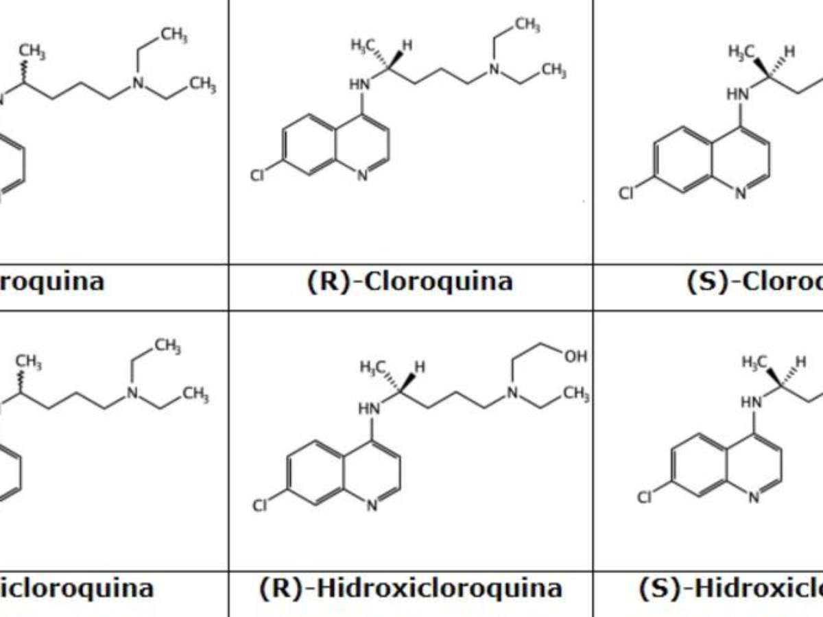 A CQ e a HCQ são administradas como difosfato e sulfato, respectivamente, em suas formas racêmicas, ou seja, em misturas equimolares de seus respectivos enantiômeros, R e S (Figura 1).