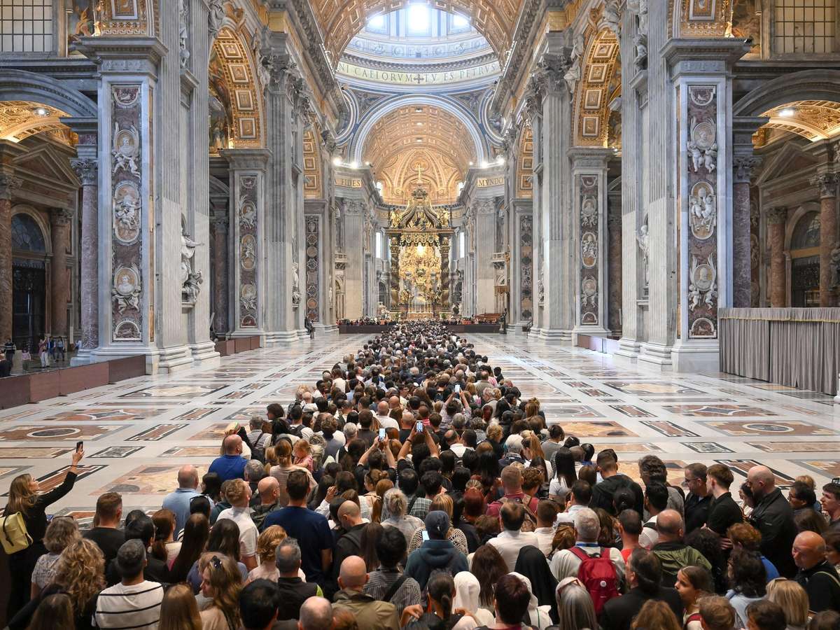 As portas da Basílica de São Pedro permaneceram abertas à noite para que a grande multidão tivesse a chance de prestar suas últimas homenagens ao pontífice morto.