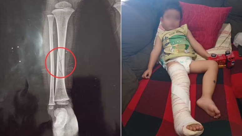 Um menino de apenas 2 anos fraturou a perna em uma creche municipal de Peruíbe, no litoral de São Paulo após brigar com um coleguinha