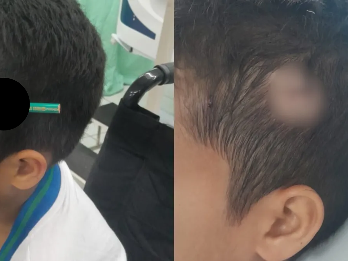 Apesar da intervenção, pouco depois, enquanto organizava seus materiais, a criança foi surpreendida pelas costas e atingida pelo lápis na cabeça. Uma ambulância foi acionada pela escola, e o menino foi levado ao hospital, onde passou por procedimento médico para remoção do objeto. O médico recomendou observação de 10 dias, já que a ponta do lápis não foi localizada. Karoline criticou a falta de comunicação da escola, afirmando que só tomou conhecimento do episódio ao chegar para buscar o filho. Ela acrescentou que retornou à unidade no dia seguinte para solicitar esclarecimentos à direção.