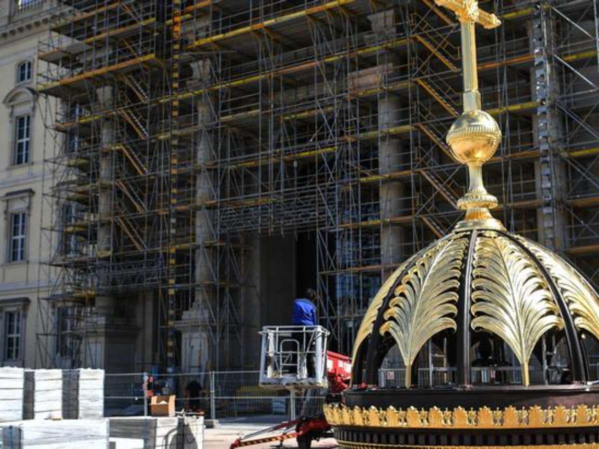 O Parlamento alemão (Bundestag) havia aprovado a reconstrução do palácio sem a cúpula. Defensores da restauração, por meio de uma associação de doadores, conseguiram, no entanto, doações que financiaram a controversa abóbada. A viúva do fundador da empresa de venda por correspondência Otto chegou a doar um milhão de euros (quase 6 milhões de reais) para a cruz.