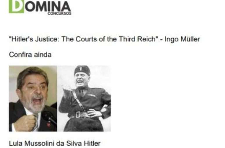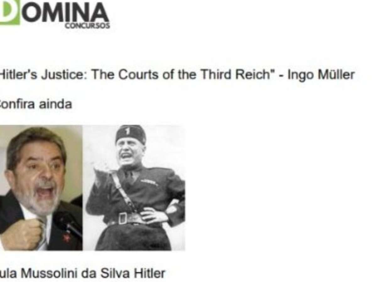 Um cursinho preparatório para concursos foi denunciado ao Ministério Público Federal (MPF) após comparar o presidente Luiz Inácio Lula da Silva (PT) a Hitler, líder do Partido Nazista, e Benito Mussolini, fundador da fascismo italiano, em um texto de apostila. A informação foi confirmada pelo MPF nesta quarta-feira, 29, ao Terra.