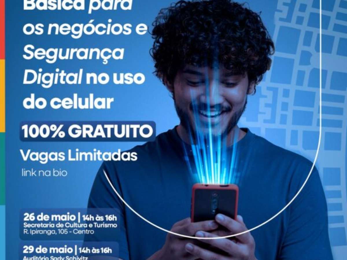 O curso de Informática Básica para os Negócios e Segurança Digital no uso do celular está com as vagas abertas e a inscrição é totalmente gratuita. As aulas acontecerão nos dias 26 e 29 de maio, das 14h às 16h.