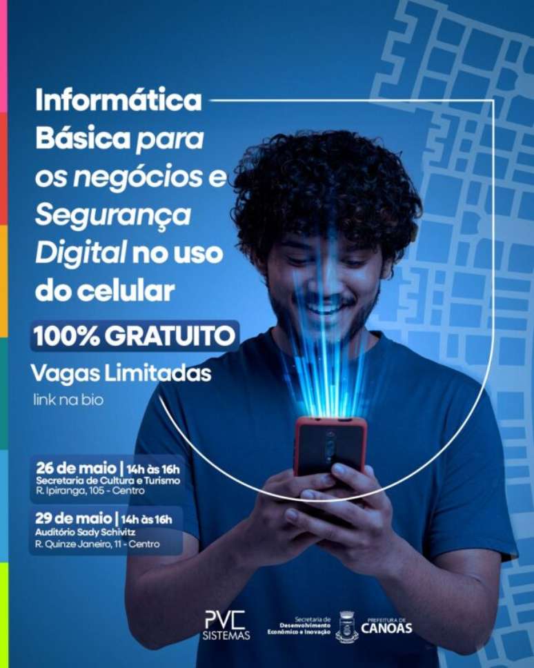 As aulas são uma parceria da Prefeitura de Canoas, através da Secretaria de Desenvolvimento Econômico e Inovação (SMDEI) com a PVC Sistemas Escola de Informática. O curso tem como objetivo auxiliar a população a utilizar o computador e o celular com mais segurança, aprender o básico do uso da internet, redes sociais, aplicativos e como se proteger de golpes online.