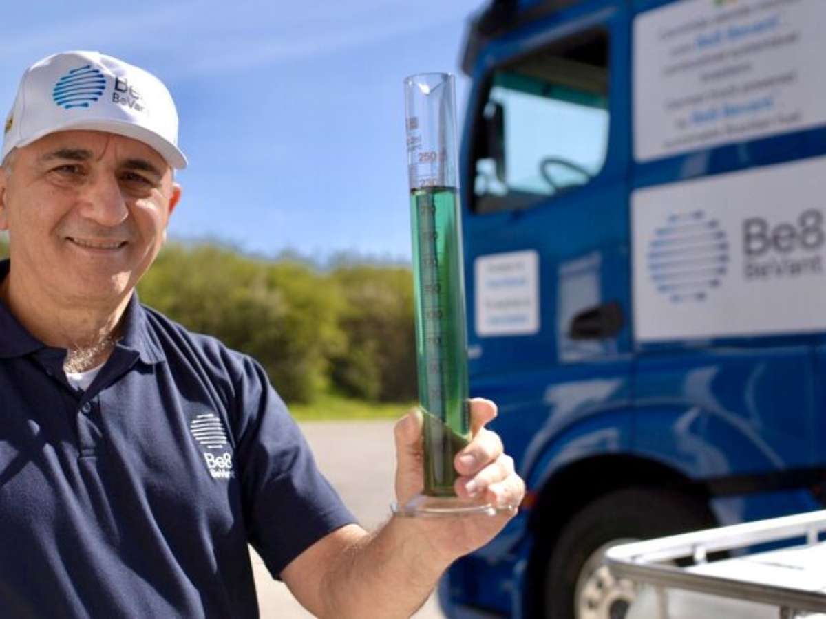Um caminhão Mercedes-Benz abastecido com biocombustível desenvolvido pela brasileira Be8 está em exibição na Hannover Messe 2026, conhecida como uma das maiores feiras de tecnologia industrial e inovação do mundo, realizada entre 20 e 24 de abril na Alemanha. O veículo, descrito como um Actros europeu, foi testado no campo de provas da Daimler Truck em Wörth e apresentou desempenho equivalente ao diesel em avaliações de potência, torque e aceleração, segundo a empresa.