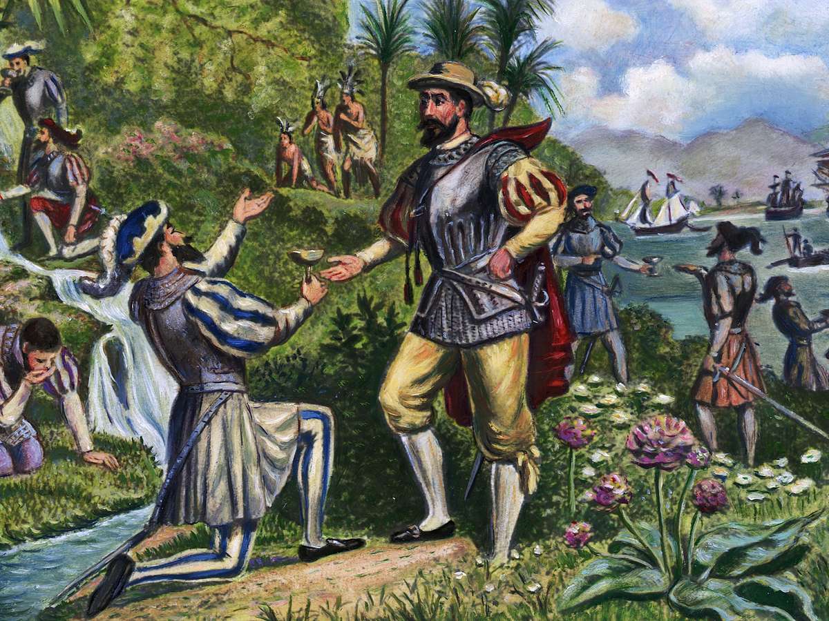 Entre 2 e 8 de abril de 1513, diz o mito, o explorador espanhol e sua tripulação atravessaram as águas costeiras do que hoje é o Estado da Flórida, até mais ou menos a região onde hoje está a cidade de Saint Augustine.