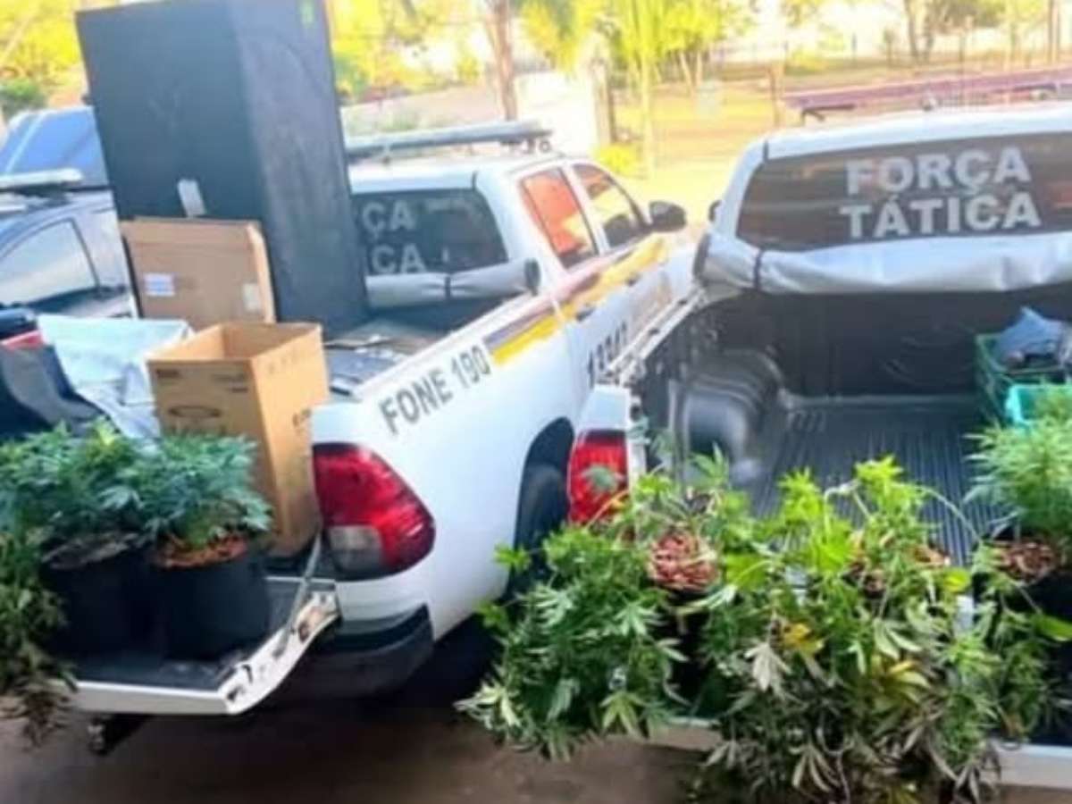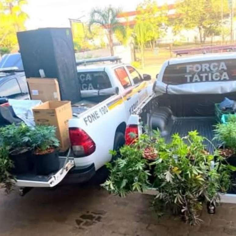 No local, foram apreendidos oito vasos com pés de maconha, cerca de 20 mudas, uma quantidade da droga já seca, além de fertilizantes e diversos equipamentos utilizados no cultivo, como luminárias, umidificador, balança de precisão, exaustores e ventiladores.