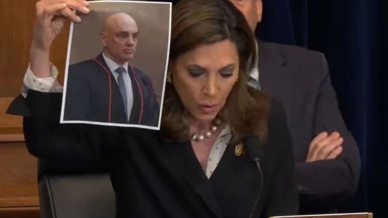 A Comissão de Relações Exteriores da Câmara dos Estados Unidos abordou suposta censura imposta por Alexandre de Moraes, ministro do Supremo Tribunal Federal (STF), em relação às redes sociais. Durante a audiência, Maria Elvira Salazar, deputada republicana, utilizou sua foto enquanto enumerava supostos crimes que ele havia cometido.