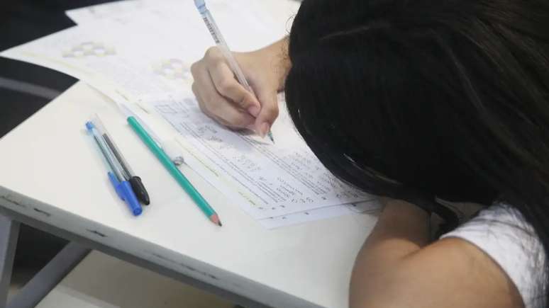 Além da redação, o primeiro dia do Enem inclui 90 questões objetivas, divididas igualmente entre linguagens, que inclui língua portuguesa, literatura e língua estrangeira, e ciências humanas, com questões de história, geografia, filosofia e sociologia.