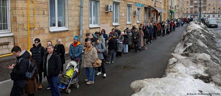 Um número considerável de russos compareceu às 12h para votar contra Putin, numa demonstração de rejeição coordenada pela oposição contra a reeleição e a guerra na Ucrânia. Como protestos abertos precisam de autorização das autoridades, a ação silenciosa foi a forma que a oposição encontrou para transmitir insatisfação durante o dia do pleito e ao mesmo tempo evitar prisões em grande escala.