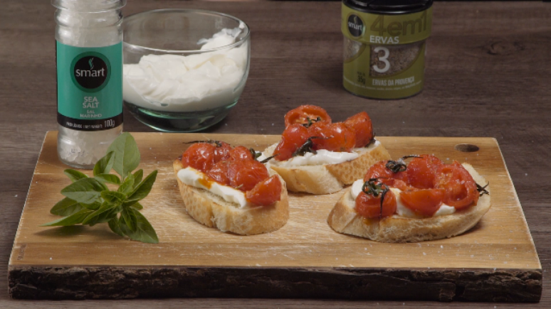 Tirar os tomatinhos do forno e colocar sobre o creme.