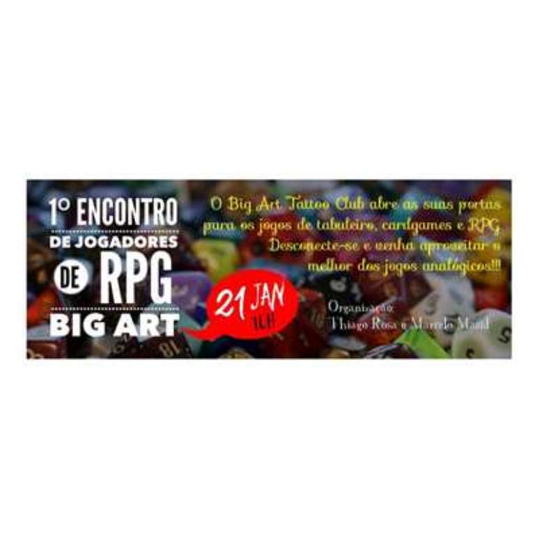 É que o espaço Big Art resolveu criar o 1° ENCONTRO DE JOGADORES DE RPG BIG ART TATTOO CLUB e na ocasião teremos mesas de jogos de todos os tipos e a presença dos principais jogadores de RPG da região.