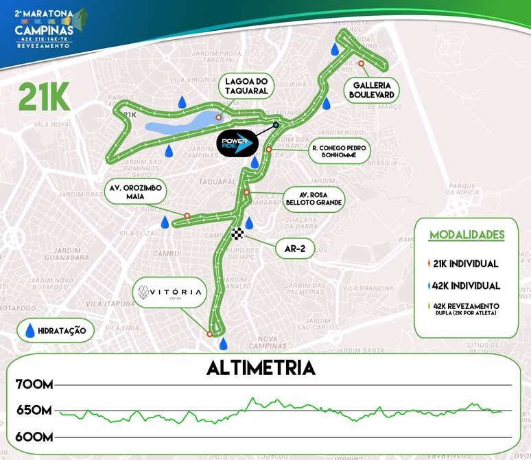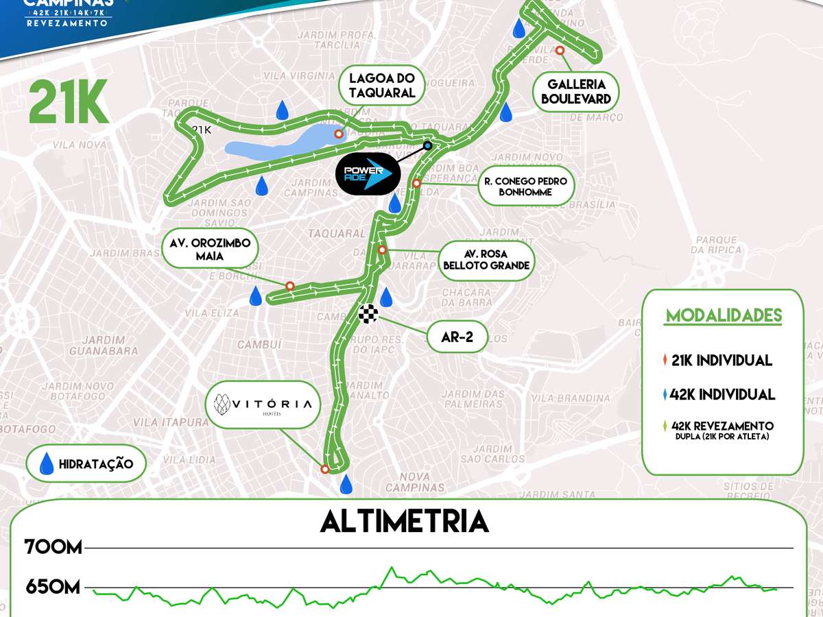O novo percurso, de 21km, passa por algumas das principais regiões da cidade, como Avenida Norte Sul, Avenida Orosimbo Maia, Lagoa do Taquaral e Galleria Boulevard.