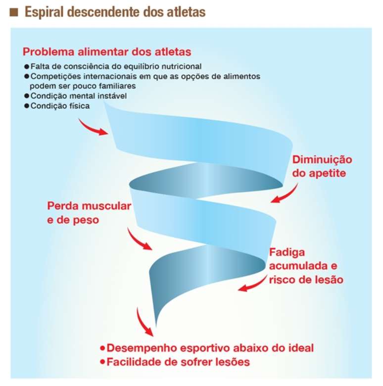 Durante competições internacionais, em que as opções de alimentos podem ser pouco familiares e o calendário exigente, os atletas podem facilmente se desviar dos seus hábitos alimentares associados ao bom desempenho. Além disso, alguns podem sofrer de anorexia causada pela instabilidade psicológica da competição.