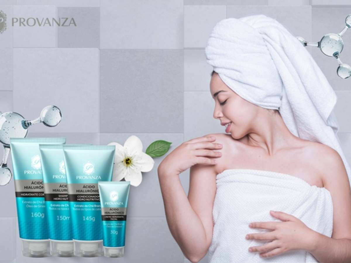 Hidratantes com Ácido Hialurônico promovem uma hidratação profunda, reforçam a estrutura da pele e conferem uma aparência firme e lisa. Podem ser usados por homens e mulheres, a partir dos 25 anos de idade. A Provanza desenvolveu duas opções: uma de creme corporal e outra facial.