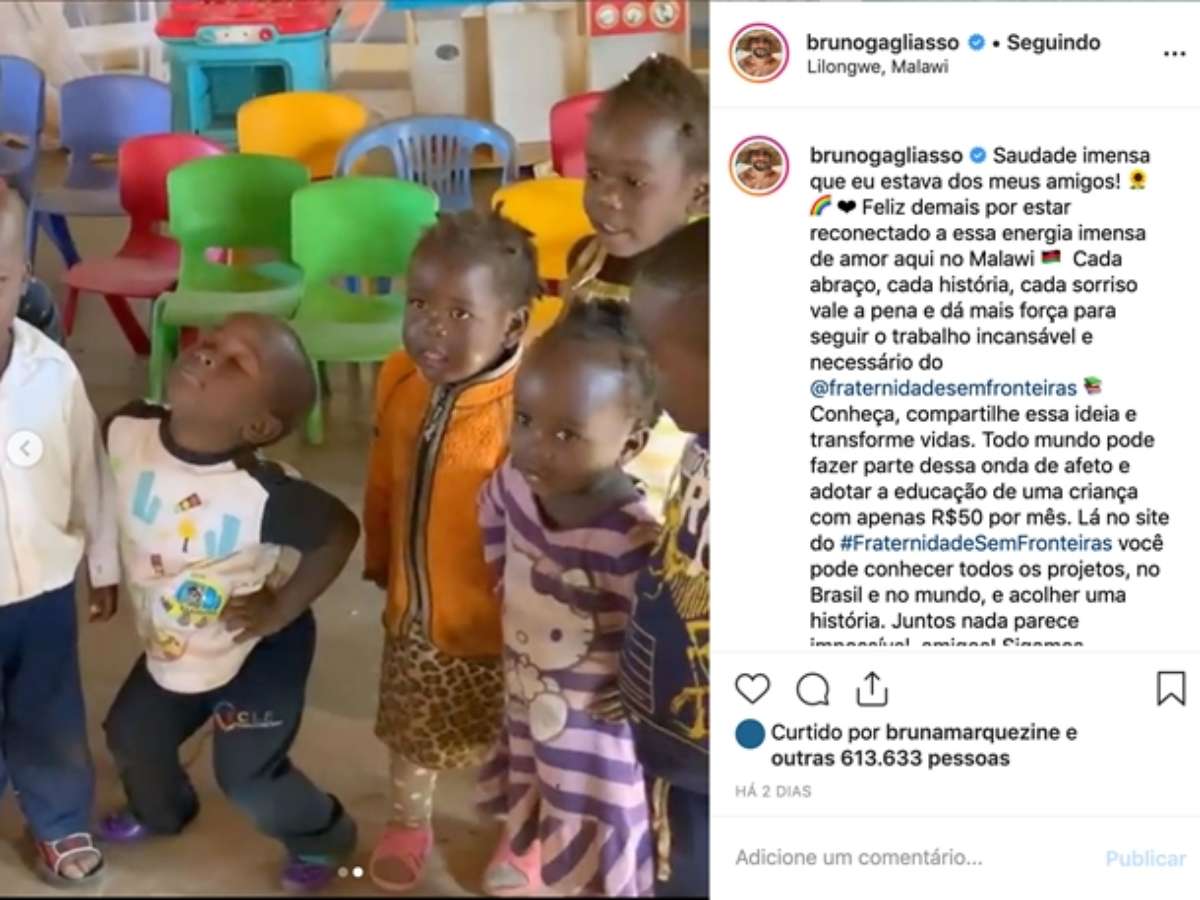 Essas crianças que receberam as doações estavam em um vídeo publicado no Instagram nesta semana pelo ator Bruno Gagliasso que está em visita ao país africano. "É muito legal ver que nossas ações, por menores que sejam, possam estar trazendo alguma diferença, seja aqui em nossa cidade, como do outro lado do oceano em um país que necessita de ajuda", complementa a mantenedora.