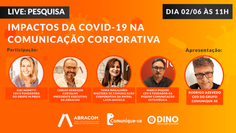 Na última terça-feira (02), o Grupo Comunique-se em parceria com a Associação Brasileira das Agências de Comunicação (Abracom) realizou o webinar "Impactos da Covid-19 na comunicação corporativa". O evento online apresentou os resultados obtidos por meio da pesquisa organizada pelas próprias companhias. O mapeamento contou com participação de aproximadamente 500 profissionais da área de comunicação, a fim de analisar o atual cenário do setor e os impactos causados devido à pandemia.