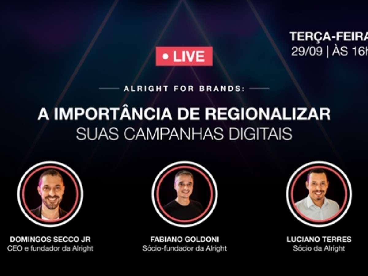 A live "A importância de regionalizar suas campanhas digitais" acontece na próxima terça-feira, 29 de setembro, às 16h, no canal da Alright AdTech Company no YouTube. Inscrições devem ser feitas no link https://adtech.alright.com.br/live-mercado-alright. Os participantes receberão materiais sobre o assunto do evento online para consulta por e-mail.