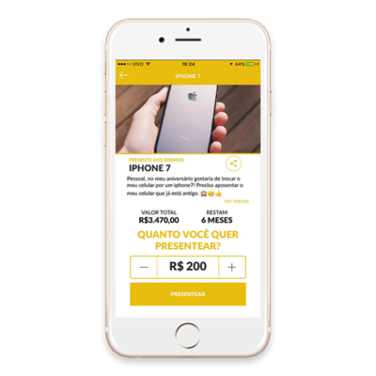 Com a possibilidade do usuário criar o seu presente, sendo um ou vários, fica muito mais fácil presentear amigos e familiares. O Jooyp foi criado para ser utilizado desde aniversários e open house, até churrasco entre amigos e viagens internacionais. No app, o usuário vai criar o seu presente dos sonhos, compartilhar com seus amigos e familiares, receber o valor presenteado pelos seus convidados e poder comprar o que realmente quer", completa Macchione