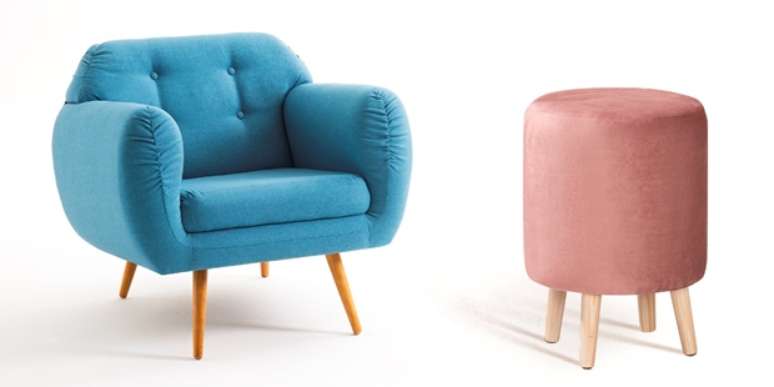 A Poltrona Beatle (de R$2.399,99, por R$ 1.426,99) e o Puff Rolha (de R$ 369,99, por R$ 215,99), estão entre os destaques da ação.