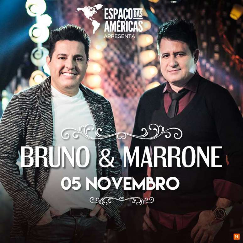 Novembro não poderia começar melhor para os amantes da música sertaneja. O Espaço das Américas recebe uma das duplas que é referência no segmento, Bruno e Marrone! Os artistas comemoram três décadas de carreira em 2016 e o show na importante casa de São Paulo será no dia 5, primeiro sábado do mês.