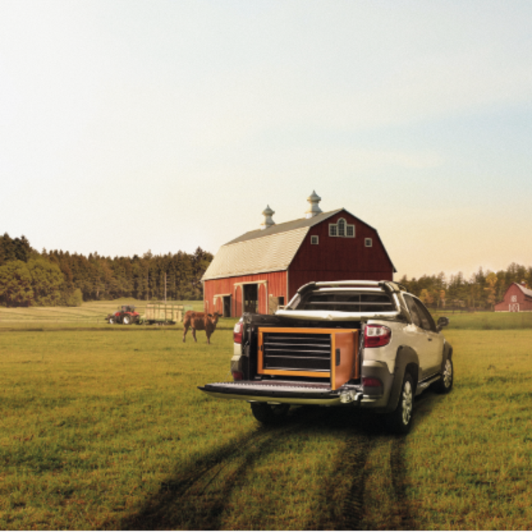 Projetada para facilitar a manutenção em campo, a caixa Pickup Box da Tramontina PRO encaixa perfeitamente na parte traseira de caminhonetes, o que proporciona mais flexibilidade, agilidade e redução de custos na manutenção de máquinas e equipamentos.