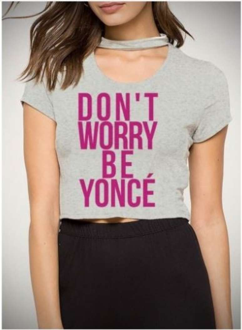Cropped Be Yonce Don't horry - Na série de croppeds há o Be Yonce, a Cápsula Shop tem modelagem exclusiva, excelente conforto, toque macio, estampa de alta qualidade e tamanhos perfeitos, em P, M, G e GG. A tabela de medidas está disponível no site.