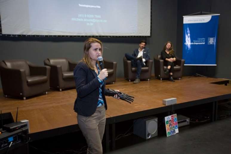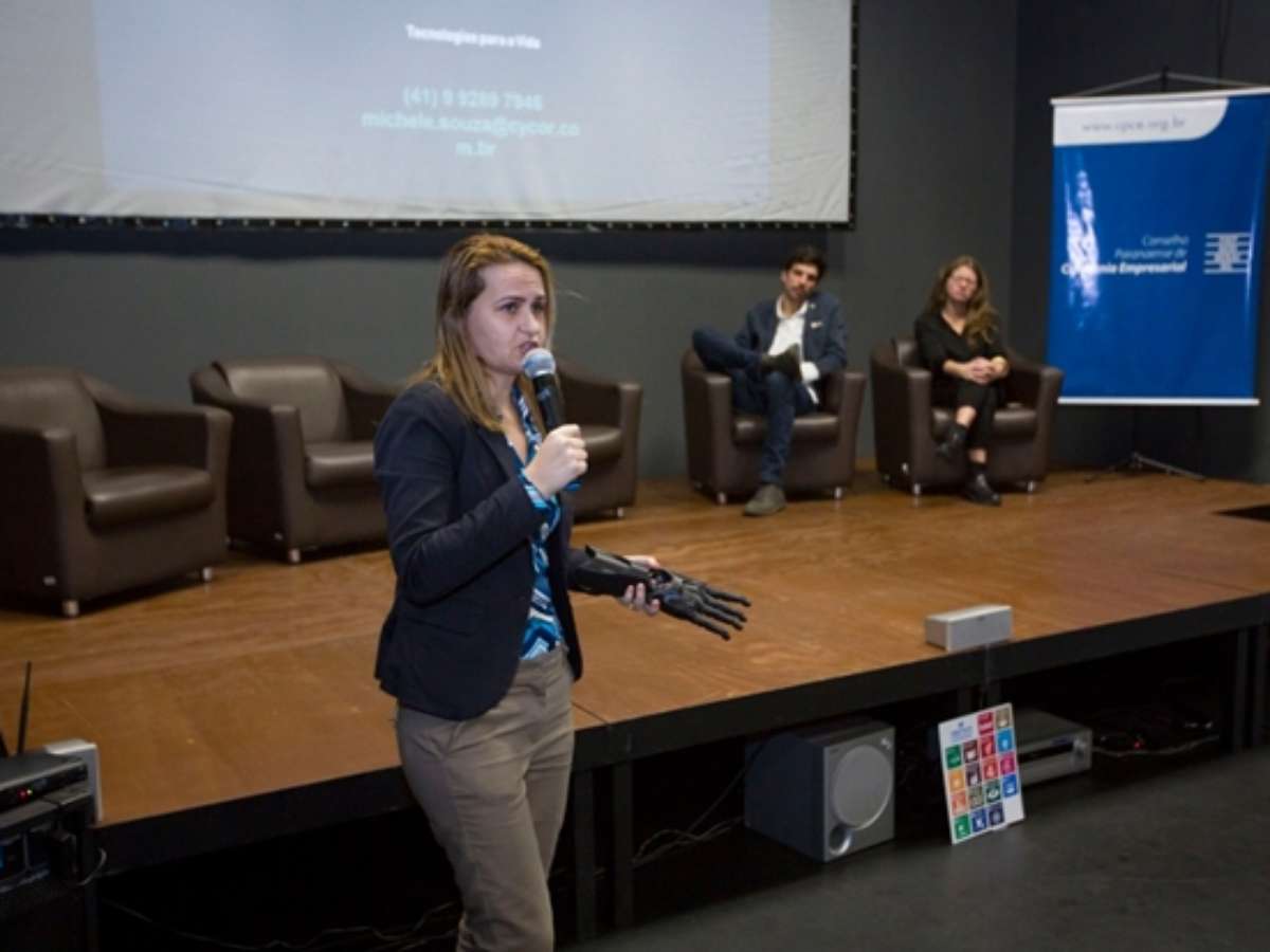 Um exoesqueleto que permite que pessoas com paraplegia ou tetraplegia levantem, andem e sentem. Uma mão eletrônica com sistema de inteligência artificial que responde a impulsos nervosos emitidos pelo cérebro. Uma tecnologia que possibilita que doenças como o câncer sejam tratadas por meio de um alvo eletrônico. E, ainda, um sistema que faz a "transmissão" de cheiros via caixinhas de som. Se todas essas ideias parecem saídas de um filme futurista de ficção científica, não são - aliás, estão sendo desenvolvidas neste exato momento por uma startup curitibana. A Cycor Cibernética, atualmente acelerada pelo Sistema Fiep, trabalha com alta tecnologia com foco principal em saúde e acessibilidade. "A Cycor foi fundada em 2013 para participar do Desafio Senai de Inovação. Vencemos em 1º lugar e, desde então, já desenvolvemos novos produtos com o objetivo de preencher lacunas importantes com tecnologias acessíveis para empresas, indústrias, desenvolvedores, pesquisadores e estudantes em todo o mundo", conta Michele Souza, CEO e diretora de desenvolvimento da Cycor.