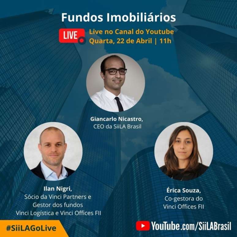 Nesta quarta-feira, 22, o projeto #SiiLAGOLIVE, apresentado pelo CEO da SiiLA Brasil, Giancarlo Nicastro, recebeu Ilan Nigri, sócio da Vinci Partners e Gestor dos Fundos Vinci Logística e Vinci Offices FII, e Erica Moreira de Souza, cogestora do Vinci Offices FII, para um bate-papo sobre como Fundos Imobiliários estão atravessando este momento de crise.