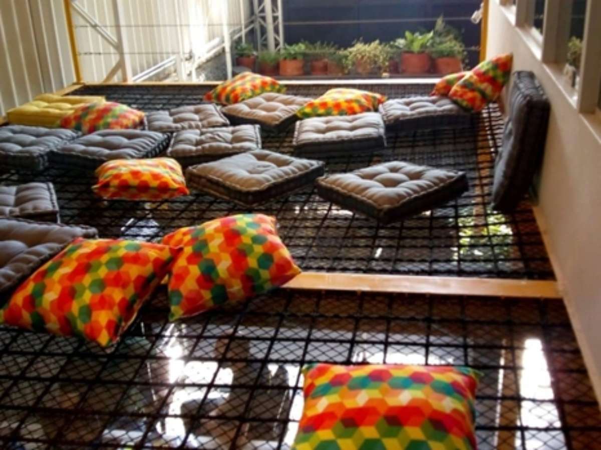 Use sua criatividade! Instale redes horizontais em vãos livres, coloque balanços no meio do escritório e aproveite espaços subutilizados e coloque puffs, almofadas ou poltronas menos formais.