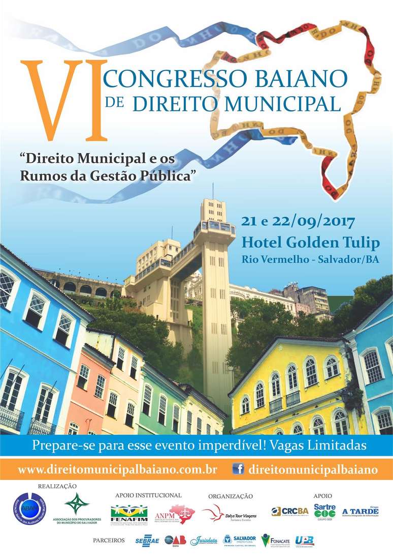 Atualmente, a mídia tem dado grande destaque à situação política e econômica do País. Os debates sobre as reformas tributária, trabalhista e previdenciária são exemplos de temas que impactam diretamente na economia e na política brasileira. Por isso, diante da importância dessas discussões, a Associação Baiana de Auditores Fiscais Municipais - Abam e a Associação de Procuradores do Município de Salvador - APMS realizam, nos dias 21 e 22 de setembro, o VI Congresso Baiano de Direito Municipal, no Hotel Golden Tulip de Salvador/BA.