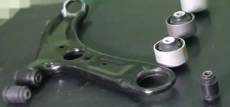 Neste conjunto também existem as buchas de borracha, que evitam o ruído do atrito de ferro com ferro, além de permitir a flexibilidade da suspensão e absorver o impacto da vibração do veículo transformando o carro em um veículo mais silencioso e macio.