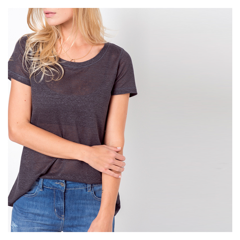 As mangas curtas dos modelos de blusa básica têm comprimento um pouco abaixo dos ombros. São blusas excelentes para usar nos dias mais quentes, para qualquer situação. As peças do site são fabricadas em: branco, preto, cinza e também em estampa de listras claras ou escuras.