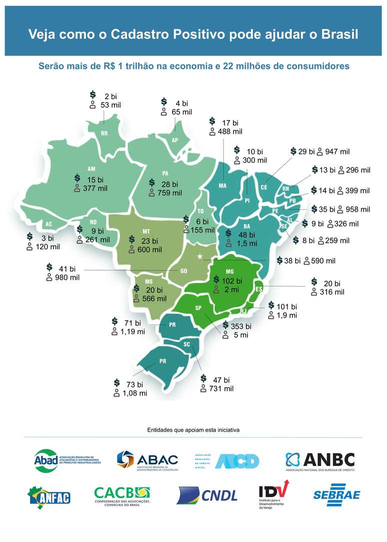 Qual o impacto da introdução do novo modelo de Cadastro Positivo, com inclusão automática dos consumidores, na economia dos estados brasileiros? Para responder a essa pergunta, a ANBC (Associação Nacional dos Bureaus de Crédito) pediu à Serasa Experian que ampliasse uma pesquisa divulgada no ano passado, que constatou que o novo CP pode inserir até 22 milhões de consumidores no mercado de crédito nacional, e mais de R$ 1 trilhão na economia brasileira.¹