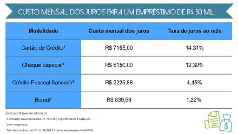 Com juros a partir de 1,22% ao mês, modalidade é mais vantajosa que cartão e cheque especial; veja outras simulações da fintech Bcredi