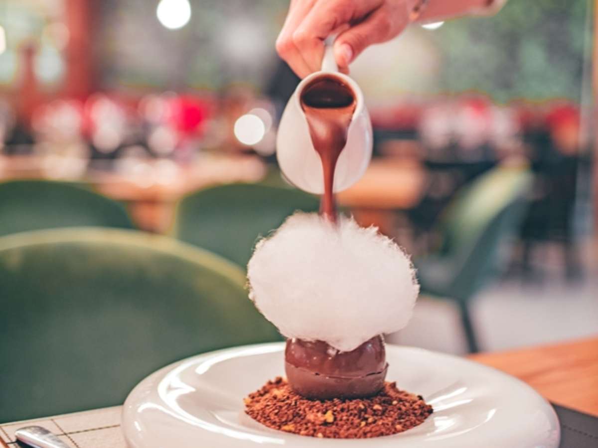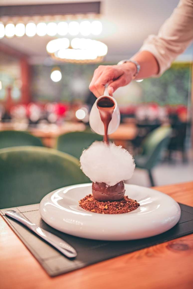 No cardápio das sobremesas, destacamos, a esfera de chocolate recheada de sorvete de frutas vermelhas e mirtilo com base de farofa crocante, cobertura de algodão doce e regado, à mesa, com calda quente de chocolate e o chamonix brownie de chocolate amargo coberta por creme de frutas secas e nozes, regado com calda quente de chocolate e cognac, tradicional e famosa sobremesa da família Delhaye Mendes inspirada nos picos cobertos de neve de Chamonix, na França.