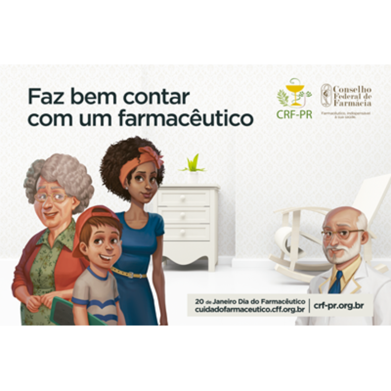 A transformação da profissão e a importância do cuidado farmacêutico estão sendo destacadas na campanha do CFF em conjunto com os Conselhos Regionais de Farmácia pelo Dia 20 de Janeiro. Lançada no início do mês, a campanha está sendo divulgada em TV, jornal, rádios, outdoors, busdoors, revistas de bordo, jornal e nas mídias sociais. Com o slogan "Faz bem contar com um farmacêutico", destaca também as diferentes áreas de atuação farmacêutica. "A proposta é mostrar que faz bem contar com o farmacêutico, em qualquer área em que ele atue. E são muitas: a Farmácia tem dez linhas diferentes de atuação e 134 especialidades", comenta o presidente do Conselho Federal de Farmácia, Walter da Silva Jorge João.
