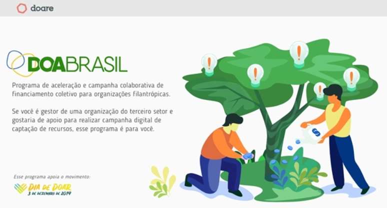"A ideia surgiu a partir da percepção de que muitos gestores sociais querem arrecadar fundos por meio de campanhas de crowdfunding, porém não sabem por onde começar e não tem onde buscar o suporte necessário para isso. O Doa Brasil nasce com o intuito de suprir essa necessidade e acabar com esse gap que existe no mercado de doações", explica Ruy Fortini, CEO e Founder da Doare.
