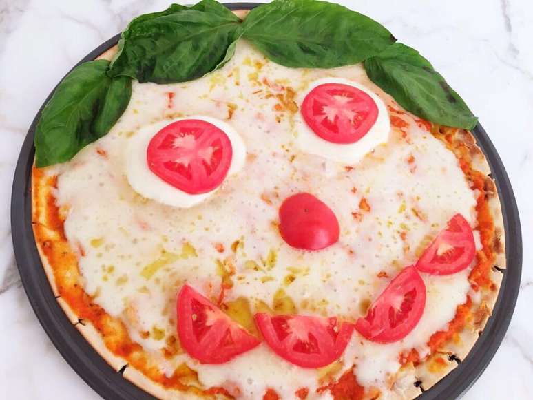 Faça o cabelinho com folhinhas de manjericão fresco, para os olhinhos utilize as bolinhas de muzarela de búfala e pequenas rodelas de tomate. O nariz e a boquinha também podem ser decorados com tomates frescos!