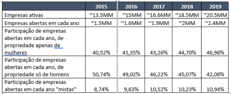 Em 2019 foram abertas no Brasil mais empresas pertencentes a mulheres do que a homens